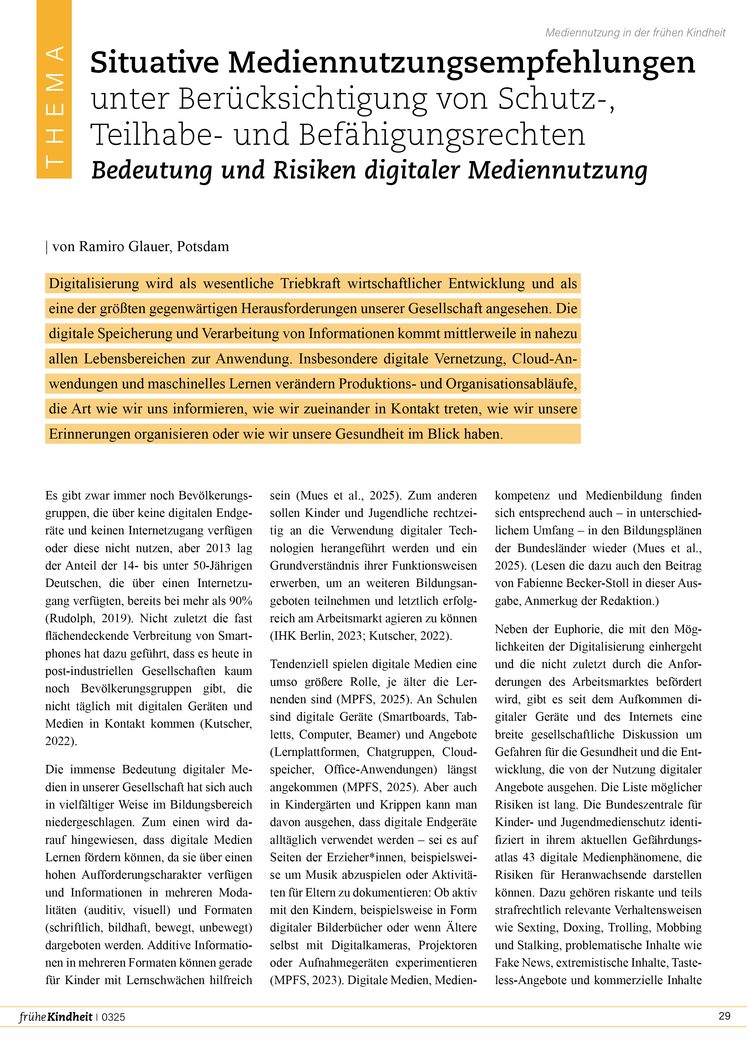 Situative Mediennutzungsempfehlungen unter Berücksichtigung von Schutz-, Teilhabe- und Befähigungsrechten Bedeutung und Risiken digitaler Mediennutzung