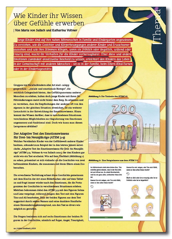 Junge Kinder sind auf ihre nahen Mitmenschen in Familie und Kindergarten angewiesen. Zu verstehen, wie die Gesichter und Körperbewegungen anderer Kinder und Erwachsener aussehen und wie ihre Stimmen klingen, wenn sie fröhlich oder ängstlich, wütend oder traurig sind, macht ihr Verhalten für die Kinder vorhersagbarer. Über diese und andere Emotionen zumindest ansatzweise Bescheid zu wissen, erleichtert den Kindern das Leben in der Gemeinschaft mit anderen Menschen – sei es in der Familie, beim Eltern-Kind-Turnen oder in der Kindertagesstätte.