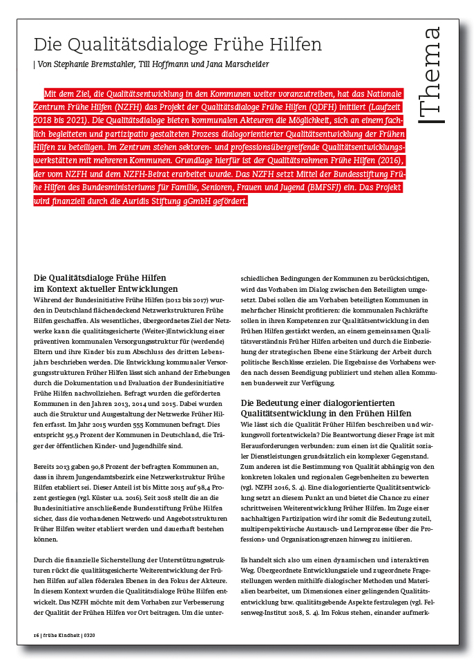 Die Qualitätsdialoge Frühe Hilfen