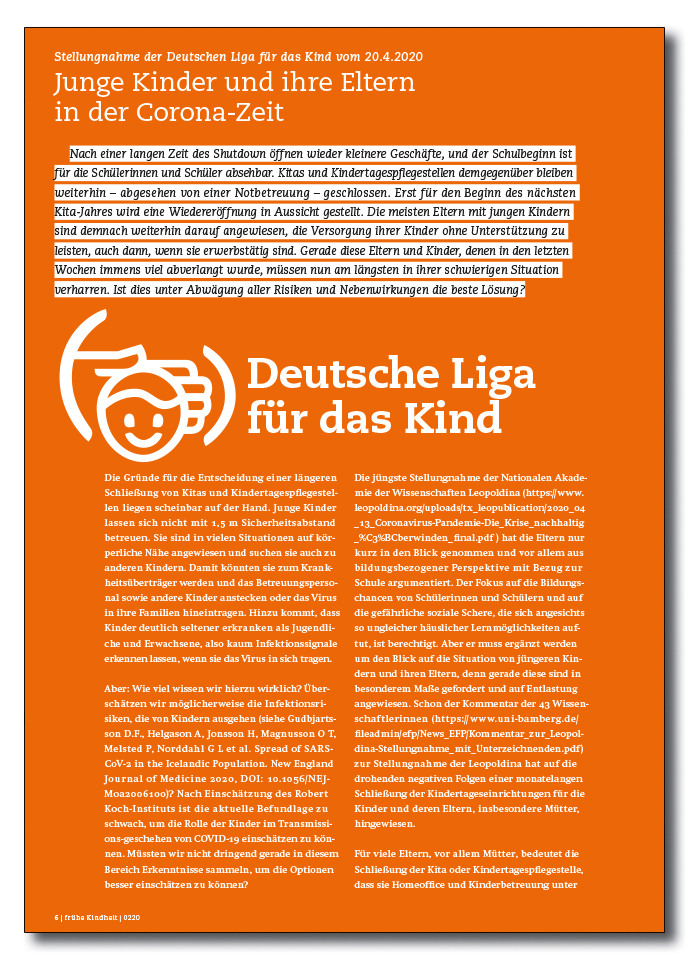 Stellungnahme der Deutschen Liga für das Kind vom 20.4.2020